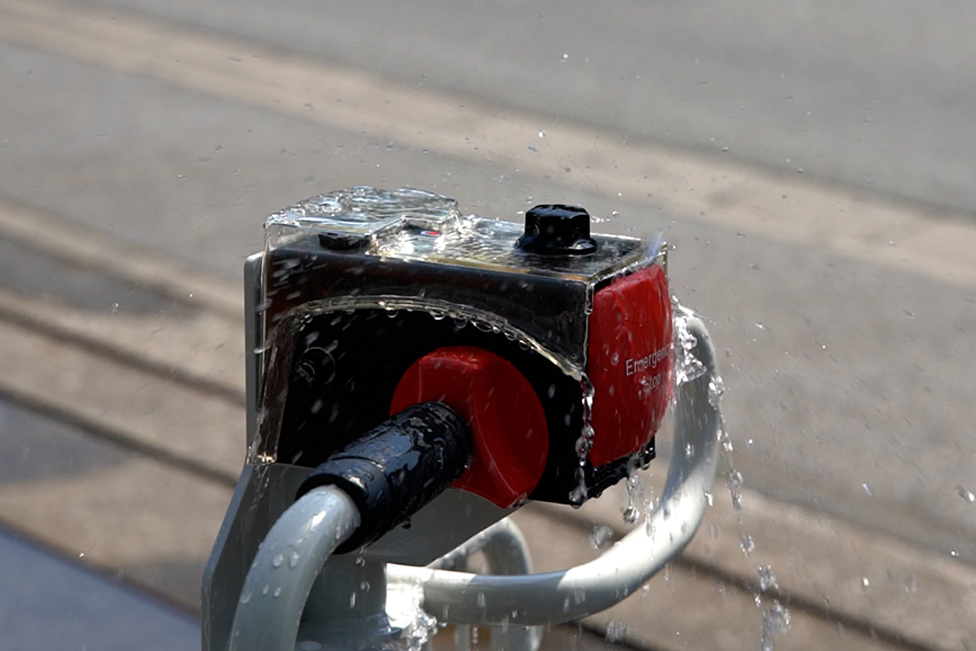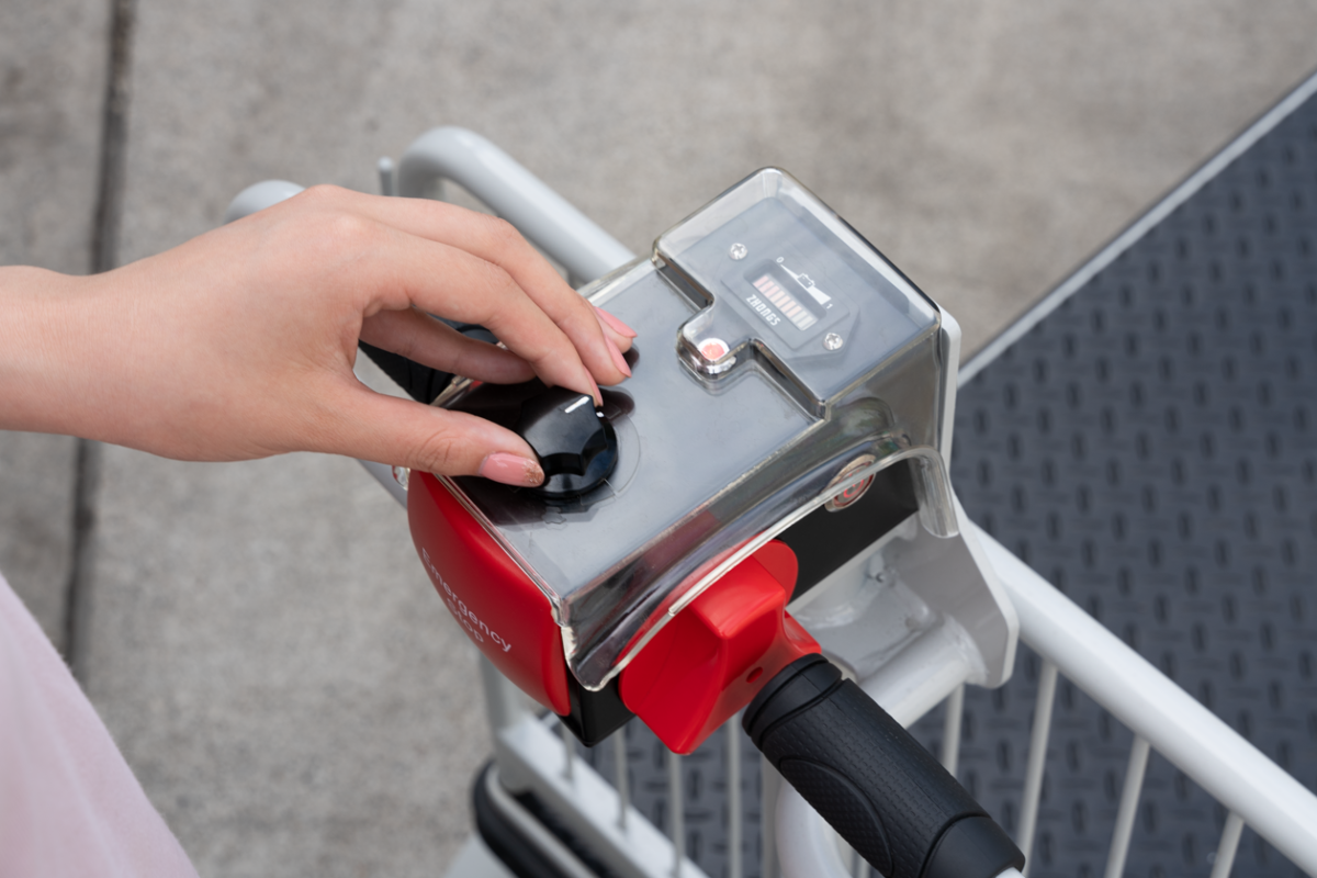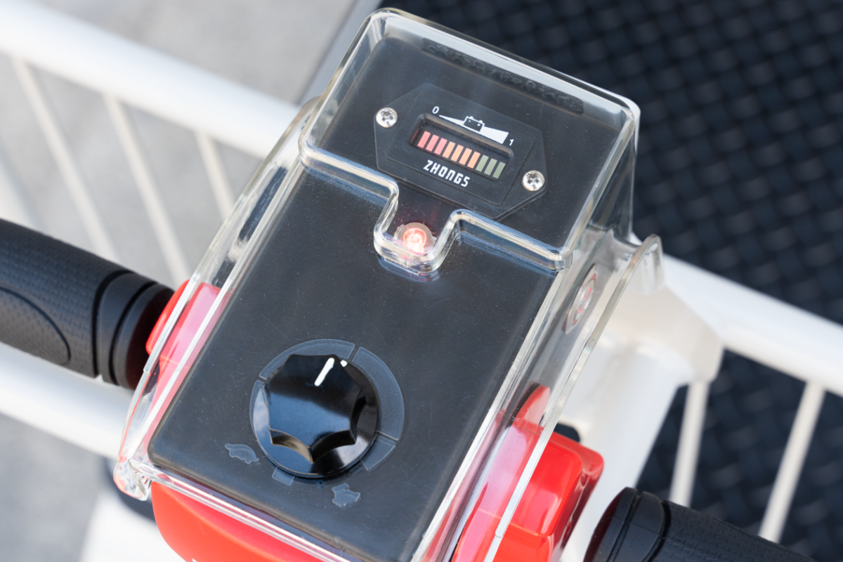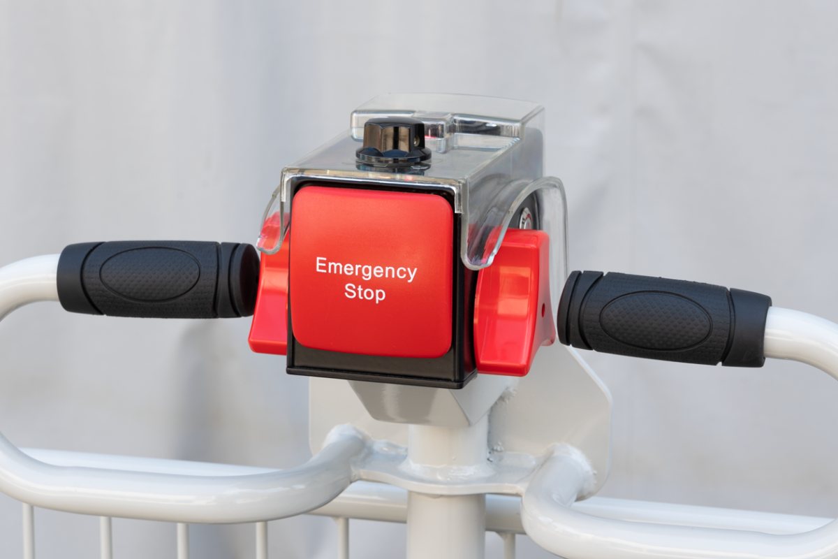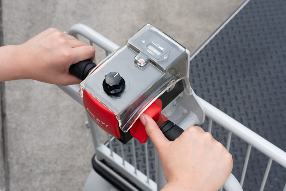 ハンドル部分に緊急停止ボタン、スロットルにはブレーキ機能を搭載しています。